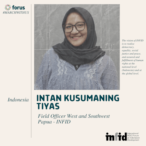 Welcome back to A Space for Us podcast and for this special series part of the #MarchWithUs campaign on gender justice. Today’s guest is Intan Kusuma from the International NGO Forum on Indonesian Development (INFID), a Forus member. With her, we will talk about women's rights in Indonesia, with a focus on gender-based violence and the role of women in the political sphere.