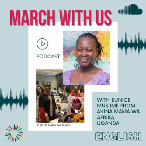 In this episode, we speak with Eunice Musiime, the Executive Director of Akina Mama Wa Afrika, a feminist-Pan-African leadership development organization based in Uganda. More information about Akina Mama Wa Afrika: www.akinamamawaafrika.org/ This conversation took place on March 14th, 2022. The podcast was produced as part of the #MarchWithUs 2022 campaign, which aims to share the voices of gender justice protagonists around the world.