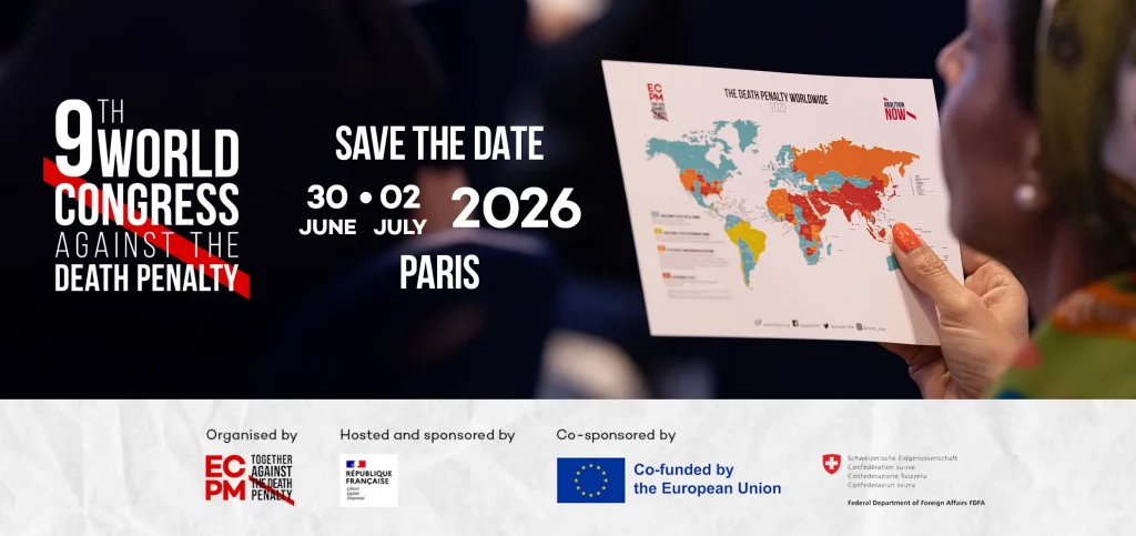The 9th World Congress Against the Death Penalty will take place in Paris from June 30 to July 2, 2026, marking a key moment for the global abolitionist movement. Held every three years since 2001, this international event will celebrate 25 years of World Congresses and bring together actors committed to ending the death penalty.