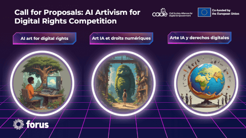 Forus, as part of the Civil Society Alliances for Digital Empowerment (CADE), a project co-funded by the European Union, is launching a call for proposals aimed at civil society organisations, activists, artists, and digital rights defenders. To support civil society organisations in digital governance, advocacy and positive narratives, we invite submissions of AI-driven artwork. These pieces should spotlight the role of civil society in shaping the digital world, as well as the key challenges and opportunities in digital rights. The three winning individuals or organisations will receive support to develop and carry out a creative project for Forus' #Let'sTalkDigital campaign.