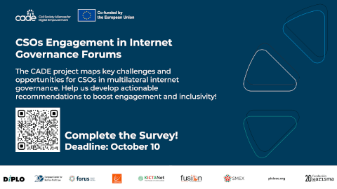 The #CADE project maps key challenges and opportunities for CSOs in multilateral internet governance. Help us develop actionable recommendations to boost engagement and inclusivity!