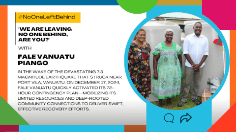 #NoOneLeftBehind - After the 7.3 magnitude earthquake struck near Port Vila on 17 December 2024, FALE Vanuatu activated its 72-hour contingency plan — leveraging community trust and limited resources for rapid, localised recovery. @StartNetwork @PIANGO2